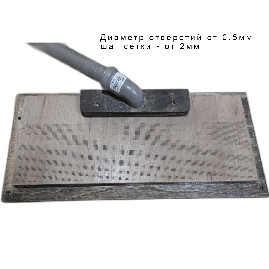 Пожалуйста следите за чистотой. Отверстия изготовлены специально маленького диаметра, чтобы умеренно крупная стружка в них не засасывалась, а пыль таки проходила относиельно свободно. Тщательно пылесосьте отверстия снаружи в порядке профилактики. Если не изготоваливалась специальная водоустойчивая версия — не допускайте попадания жидекостей, это повлияет на геометрию изделия.