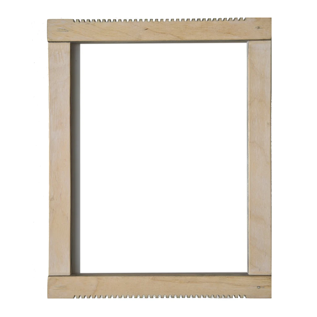 И тут сразу есть о чем подумать и что сказать. В ценовой категории до 1000 рублей мы видим псевдо-станок за 304 рубля мало того, что с шириной рабочего поля 10см, так еще и с шагом зубьев скорее под канаты, нежели под нормальные для гобеленов нити основы. Баловство это будет, а не проба и не работа. Сделующая ценовая планка это уже 1000 рублей и выше, где предлагаются китайские изделия из пластика или бука такого вида —