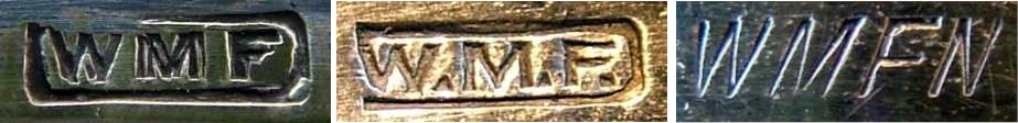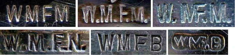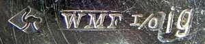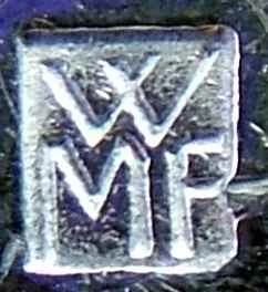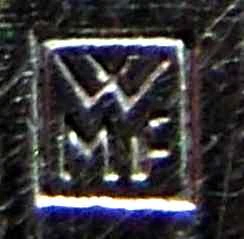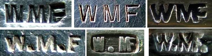 Клеймо WMF содержит комбинацию из двухрядной аббревиатуры, расположенной в прямоугольнике. Размер прямоугольника 2,1 мм х 2,4 мм. Встречается нечасто —